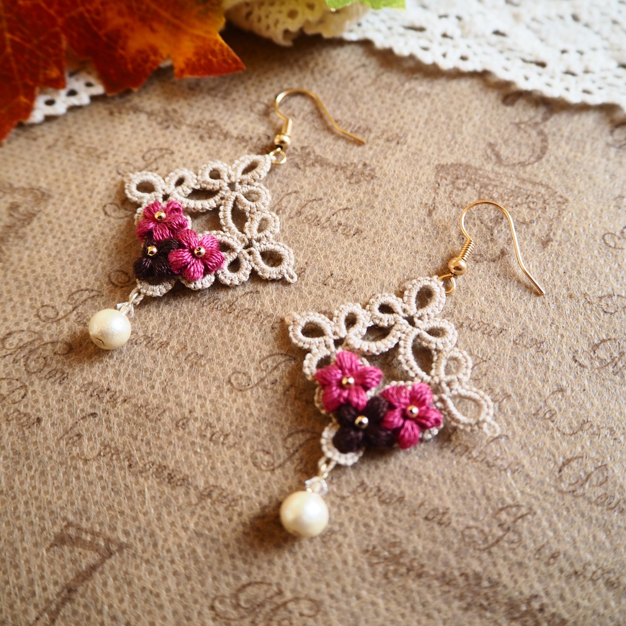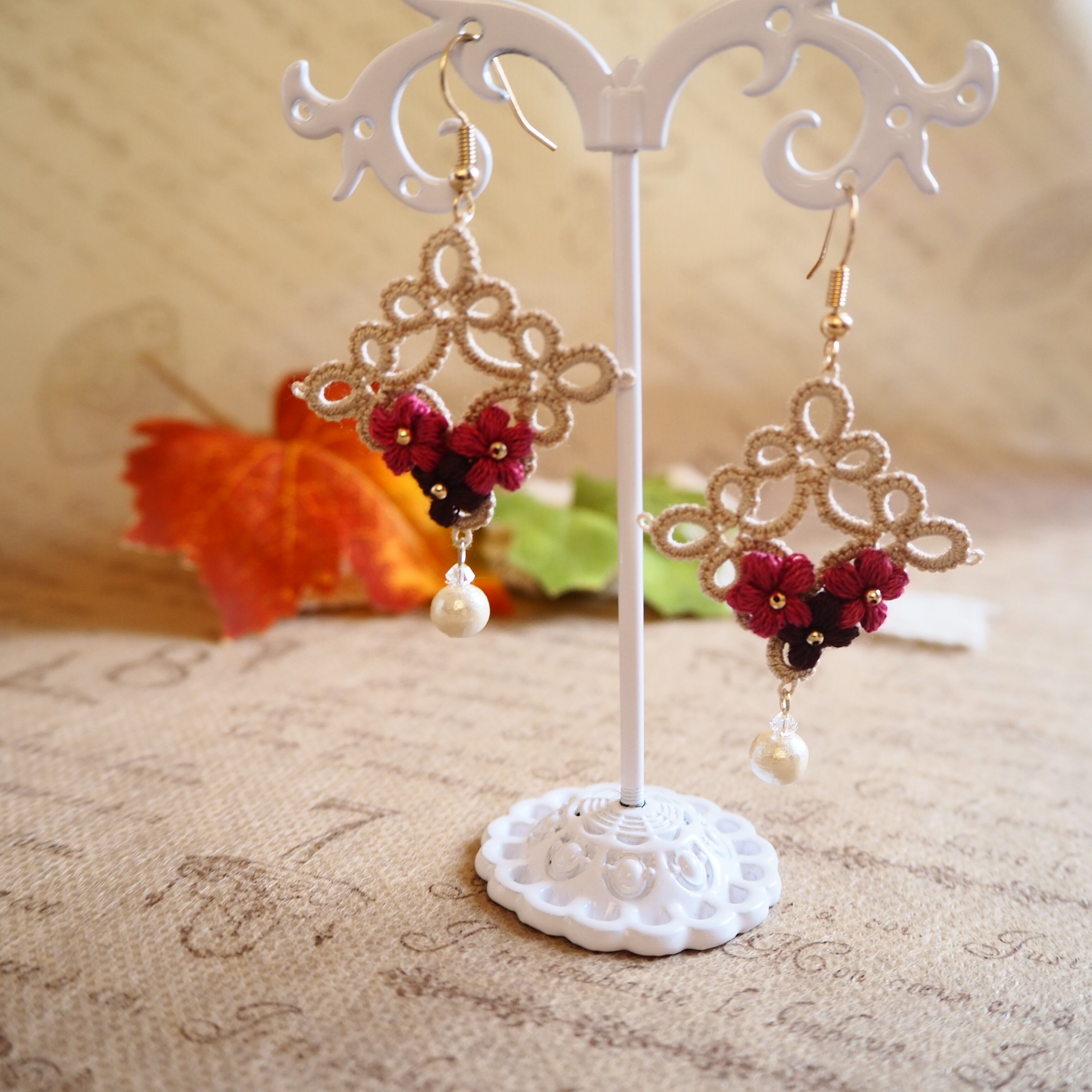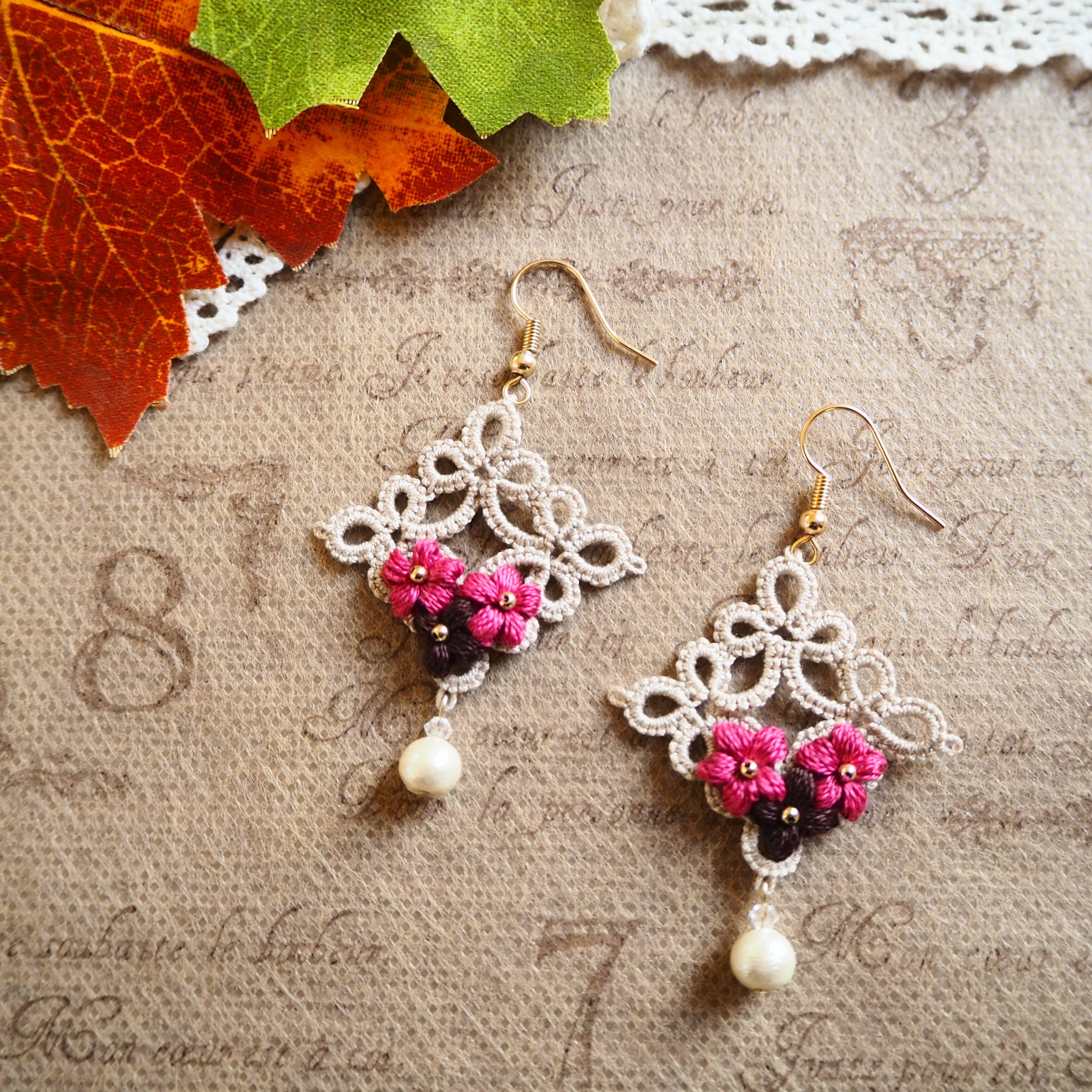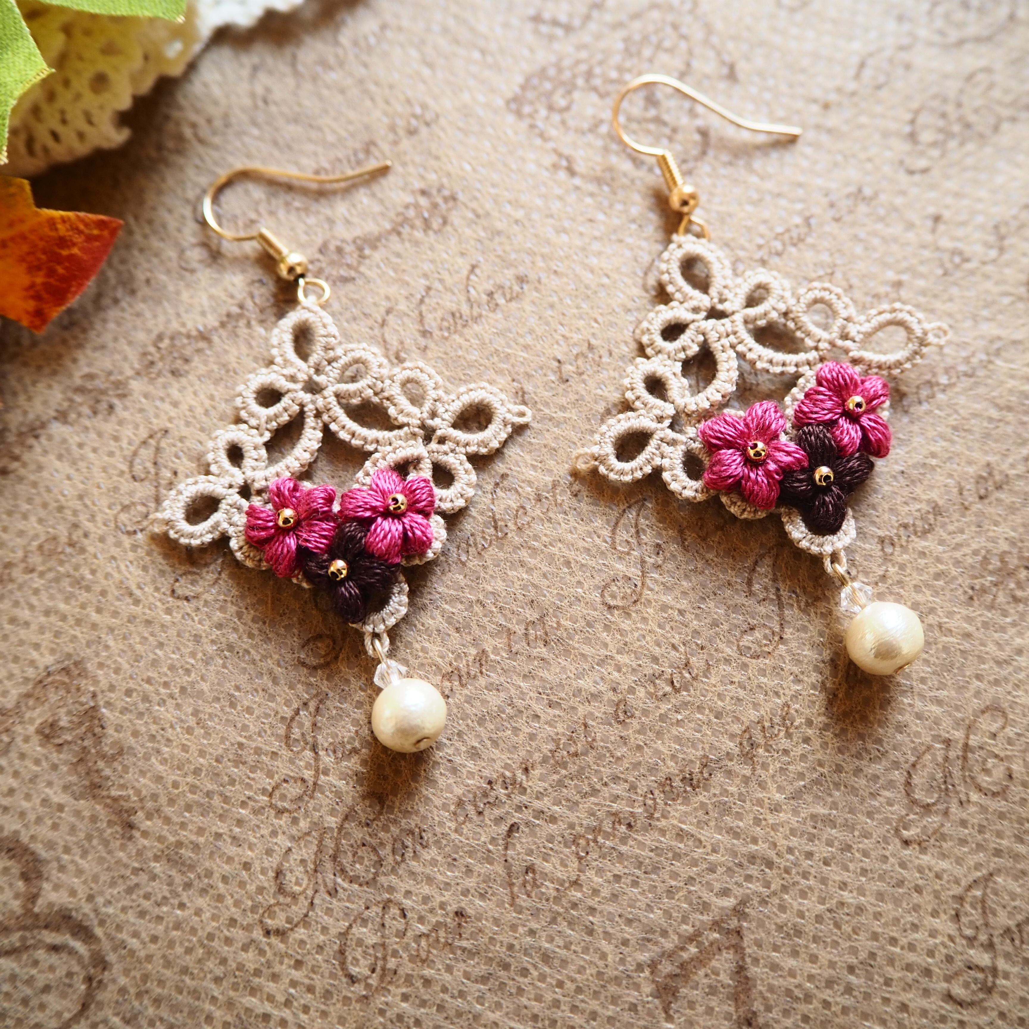 こちらは、タティングレースでサークルを編み刺繍糸で小さなお花を編みました( *´꒳`* )