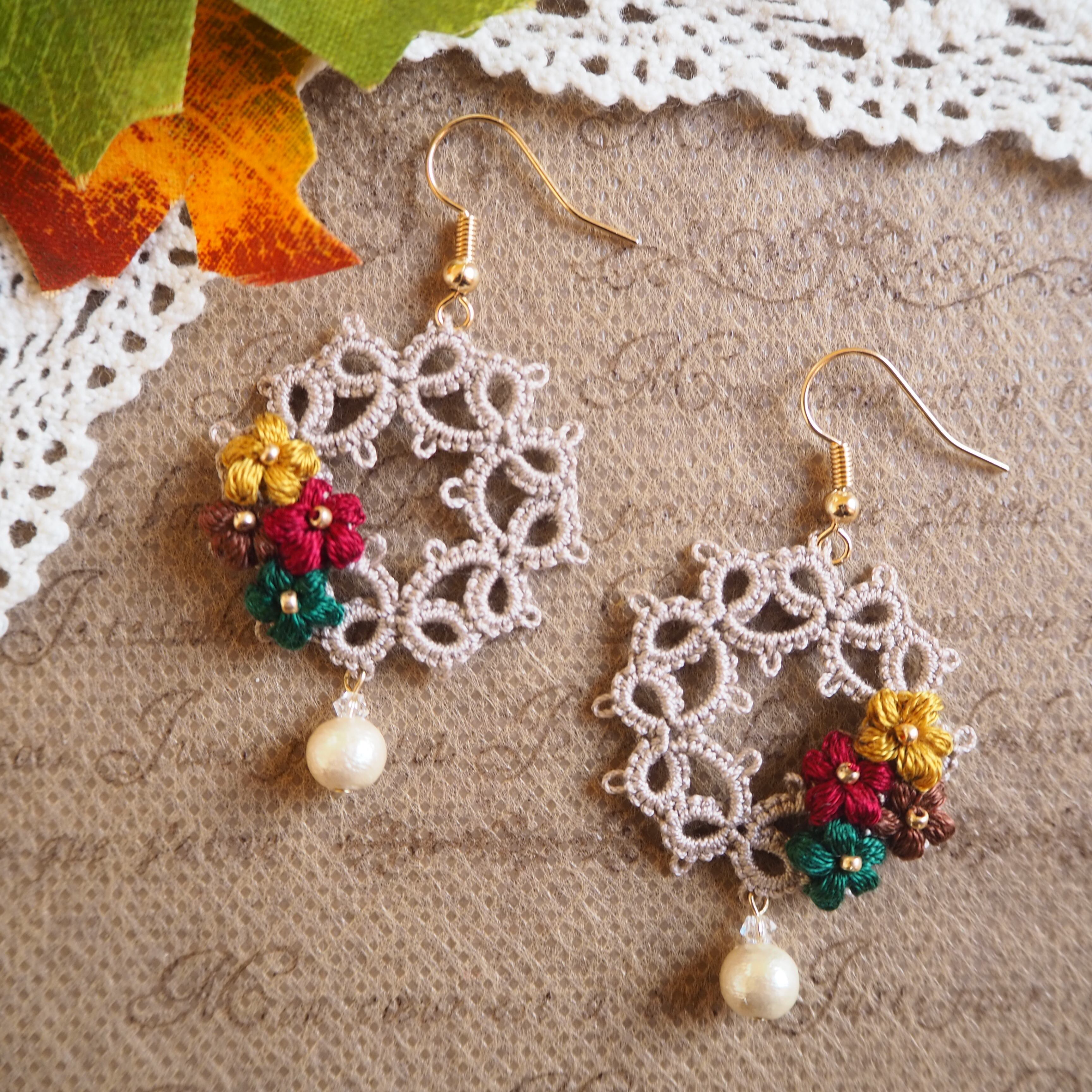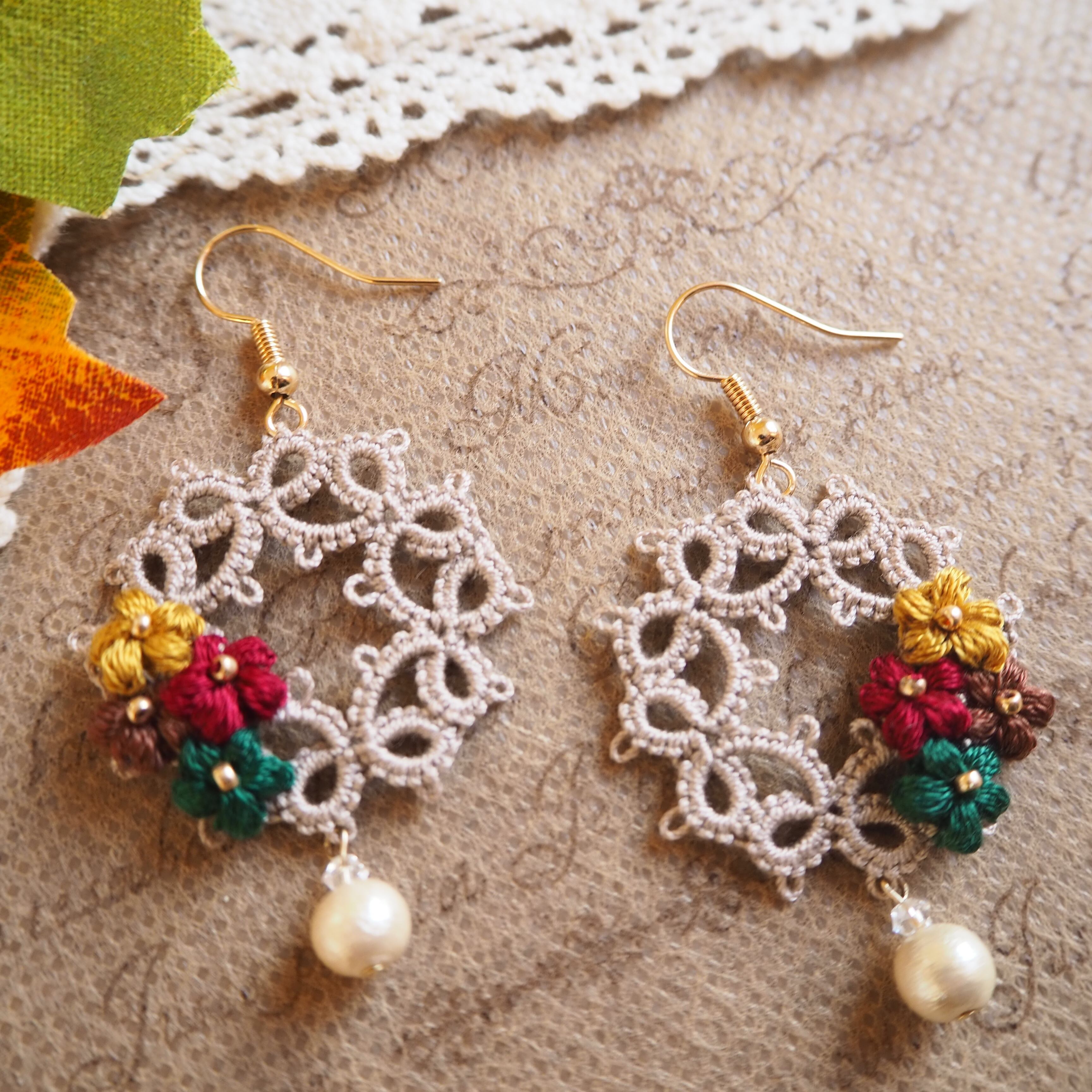 こちらは、タティングレースでサークルを編み刺繍糸で小さなお花を編みました( *´꒳`* )
