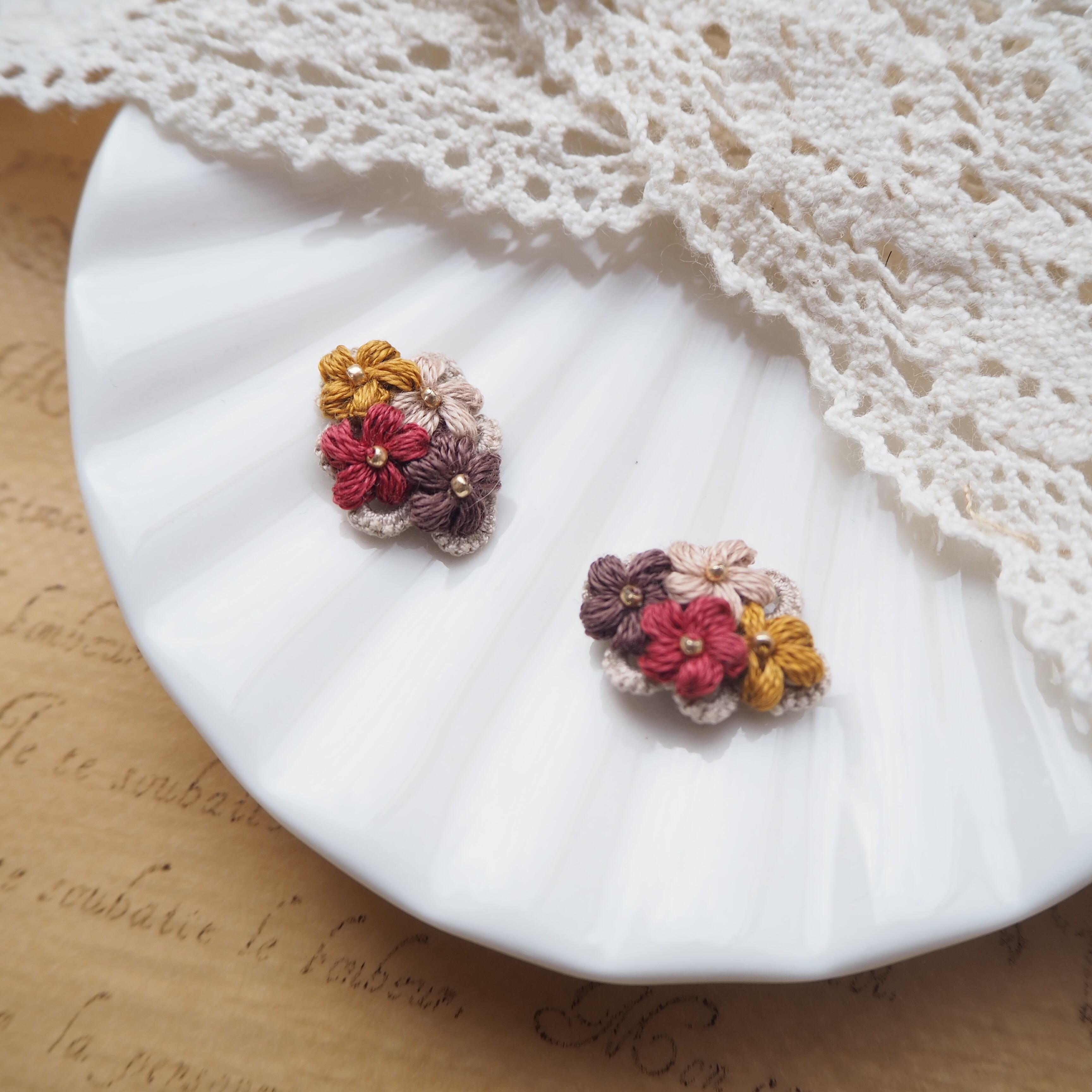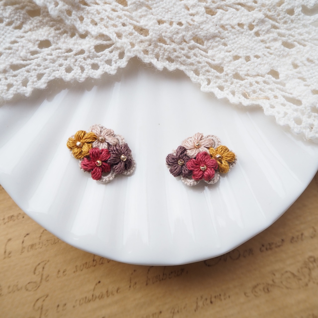 こちらは、タティングレースでモチーフを一つ一つ編み刺繍糸で小さなお花編みを合わせました。