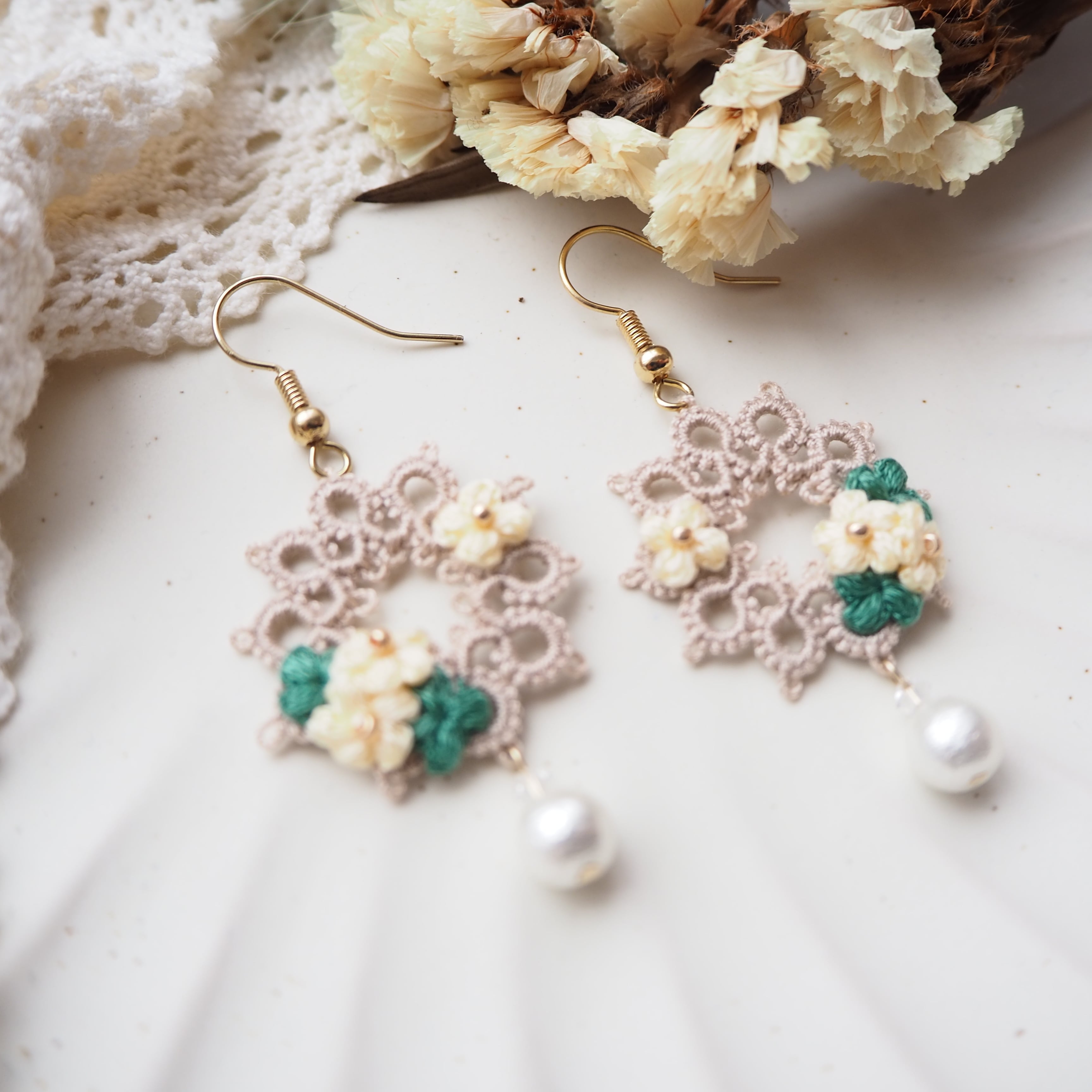 こちらは、タティングレースでサークルを編み刺繍糸で小さなお花を編みました( *´꒳`* )